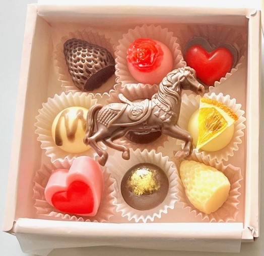 見た目だけではなく、チョコレートやイチゴの甘い香りを加えて作り完成させます。