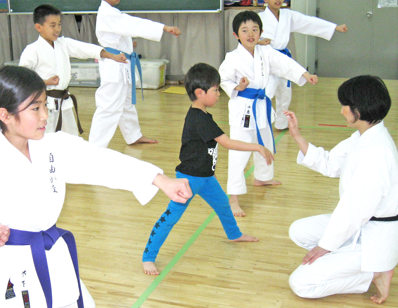 元気よく挨拶をすることから始まり、ストレッチ、基本稽古、移動稽古、型などを行います。 実践的な組手の練習もありますが、年齢や体格、帯色の差によって加減をすることを教えながら行います。 空手を通して、子どもたちが成長してい......
